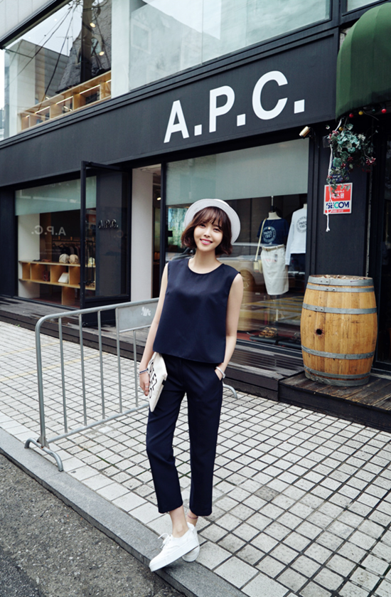 搭配看点:黑色背心搭配黑色裤子,统一的色系十分抢镜。不过要在配饰上选择浅色单品来提亮造型,比如搭配白色包包、鞋子与帽子等,或者加一根白色腰带来勾勒身线也十分美艳。
