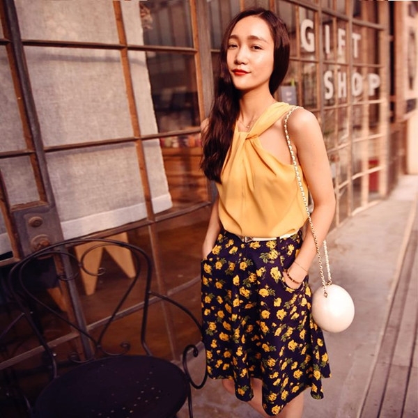 搭配看点:浪漫的碎花单品搭配个性的无袖T恤衫自然也是美美哒,配饰上再选择一款吸睛的链条包就更有范儿了。