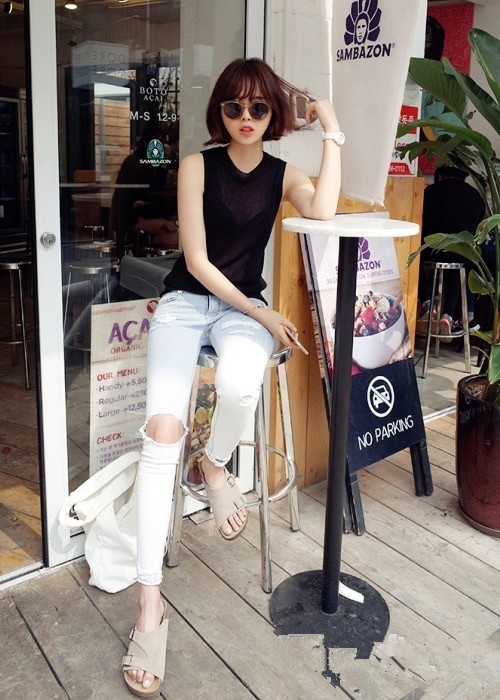 破洞牛仔裤搭配图片,破铜牛仔裤搭配什么上衣,破洞牛仔裤搭配什么鞋子