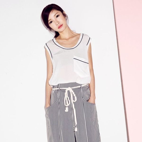 搭配看点:背心搭配条纹单品则很有街头休闲气息,也比较适合居家选择。