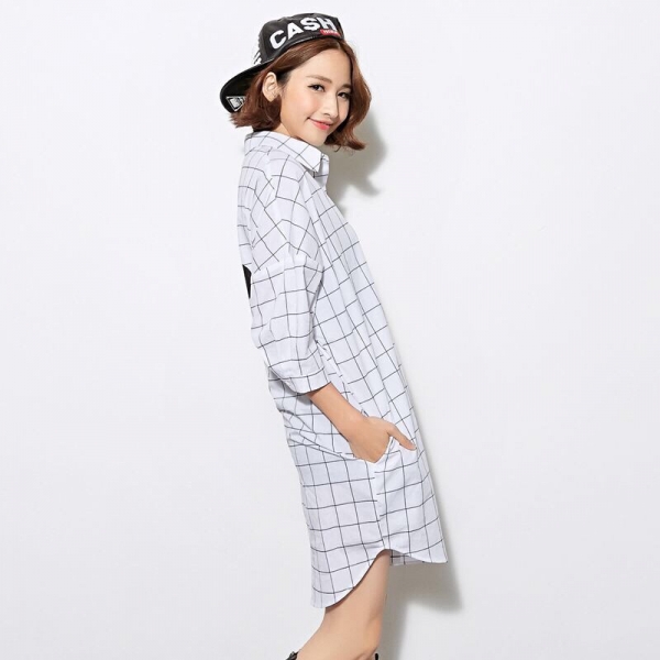 长款黑白格纹衬衫+棒球帽