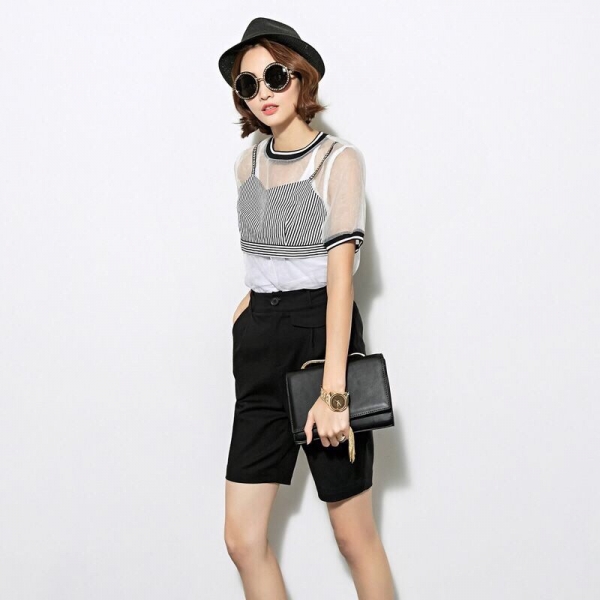透视上衣+中裤+礼帽+手拿包