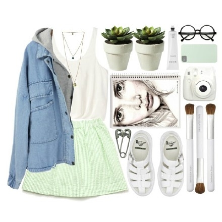 LOOK 7:绿色裙子+白色上衣+牛仔外套