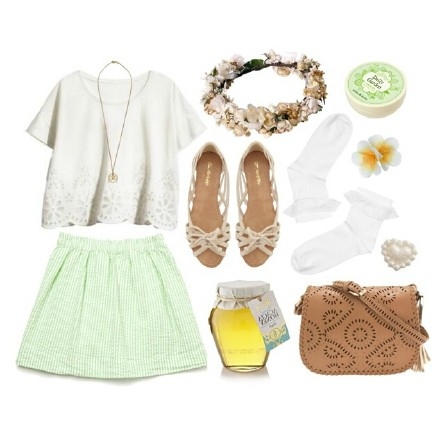 LOOK 5:绿色裙子+白色上衣+复古小包
