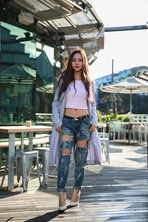 腿粗的女生们下意识会选择颜色比较深的衣服,但是总是那么穿也是会显得过于深沉。其实不是说白色就显胖的,只要配色简单就能达到相应的效果,选择淡雅的颜色也能达到相应的效果,选择浅色的衣服就要注意,下半身的颜色要相对的比上半身深。