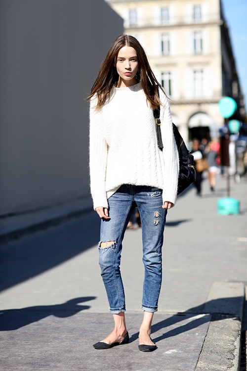 窄脚裤在小编的印象里流行了两拨,第一波是小编初中,那个时候非主流猖獗,走哪都是那种宽腰窄腿的牛仔裤,就别说好看了,简直是伤人眼球。近些年这种窄脚的裤子通过改良变成了不一样的款式,优秀的剪裁贴合着腿部,只为塑造良好的腿型。至于为什么窄脚裤要当九分裤穿是因为露出一截脚踝能让腿看上去更细,这种稍微露一截的穿法比让裤脚堆叠在你的鞋上看上去更加的精致。