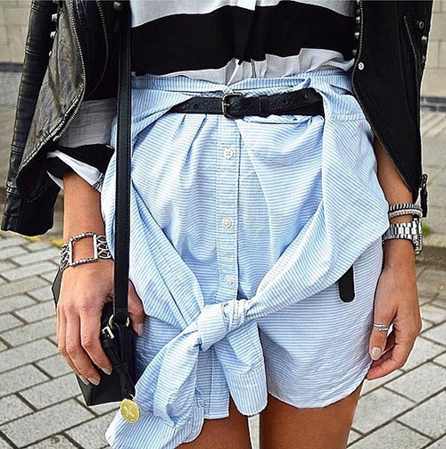 曾经有一个人把亚历山大王的一款衬衫裙穿的断了货,既然买不到!那就只能自己开脑洞了!吧自己的衬衫系在腰间吧,分分钟你又多了好几条新款半裙。