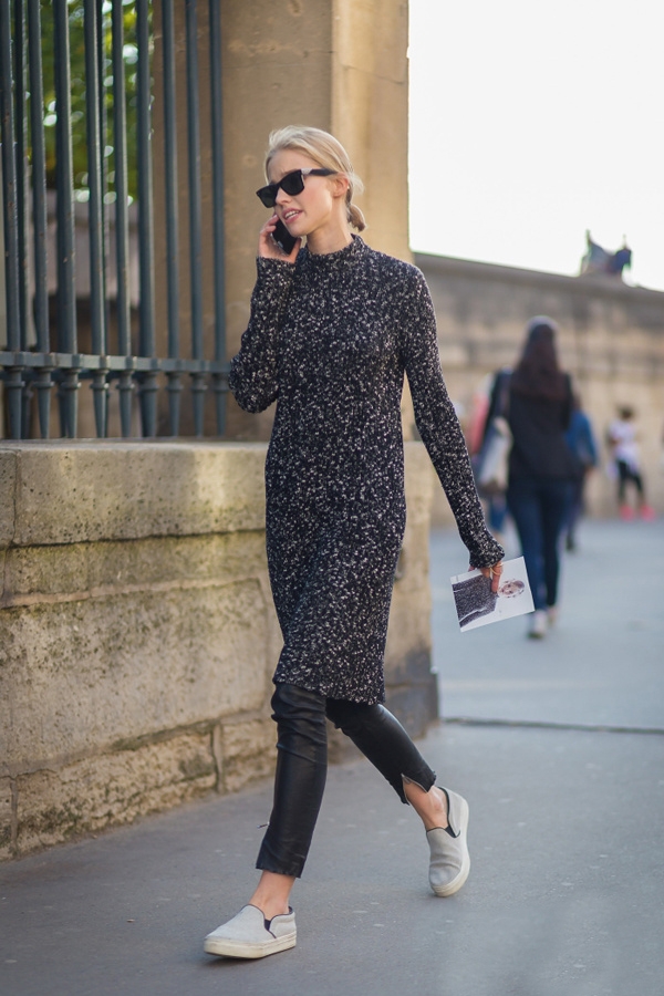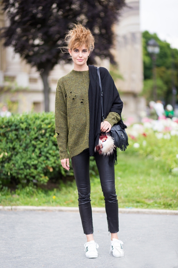 针织衫怎么搭配:针织衫+皮裤