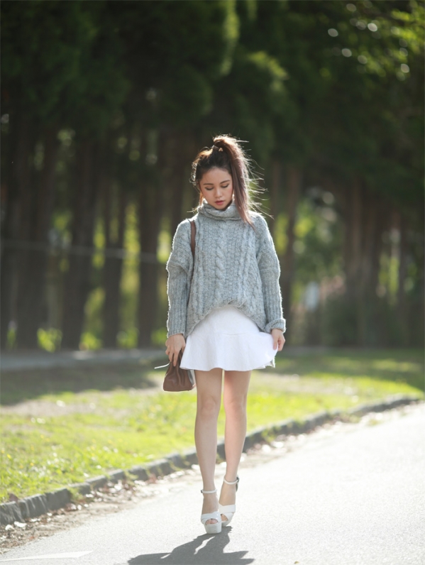 矮个女生秋季针织衫搭配:针织衫+短裙