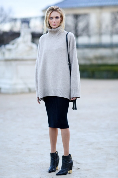 秋季时装搭配示范:细针织套头衫