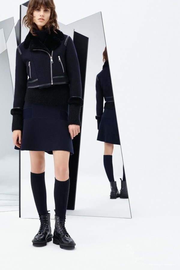 Neil Barrett本季女装融入到七十年代中期的朋克元素,黑色皮夹克结合现代的设计理念,在保留了基本复古元素的同时,更具有时髦感,传统的大衣外套由羊毛呢和设得兰羊毛编织而成,去除以往对秋冬服饰理解的厚重感和臃肿