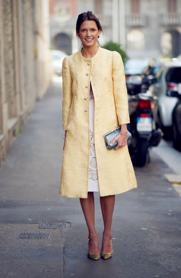 时尚看点:金色的调调在2015年的秋装舞台上大放异彩,很多女明星时不时的拿在金色包包,金色尖头鞋,手链等等出来转一转,吸睛率非常的高。金色的风衣看起来更加霸气十足,那些有掌控欲的美眉,可以去尝试一下哦!