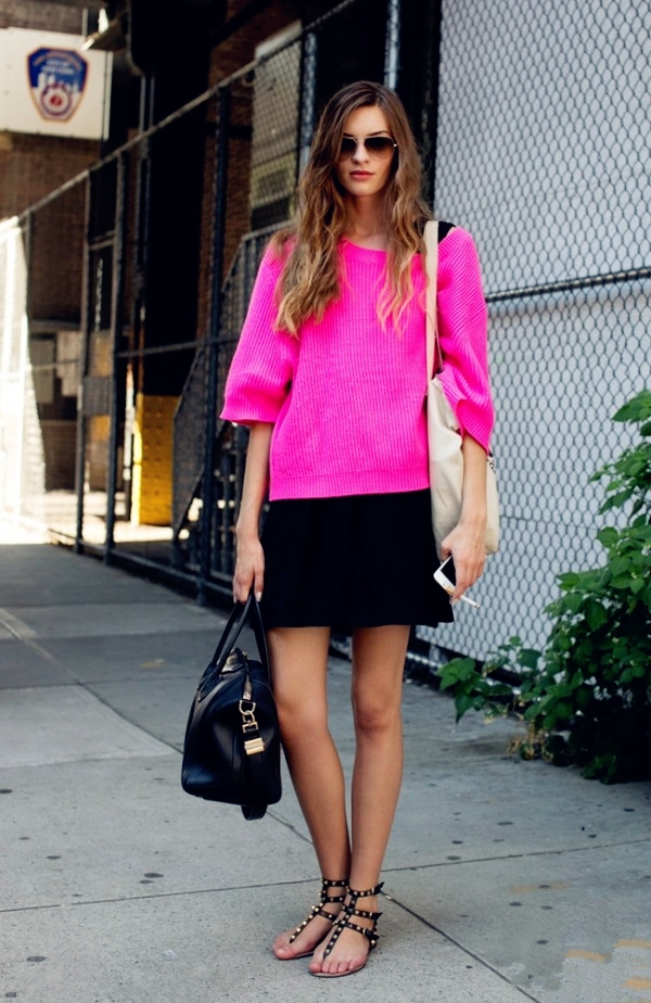 时尚看点:秋装新款单品列表少不了针织衫的身影,可不要以为针织衫就是平常休闲穿穿,其实它也可以穿得很有范。2015新款的针织衫加入到半袖的设计,前卫新颖,配上靓丽的荧光红色调,能让你瞬间成为人群中的焦点。