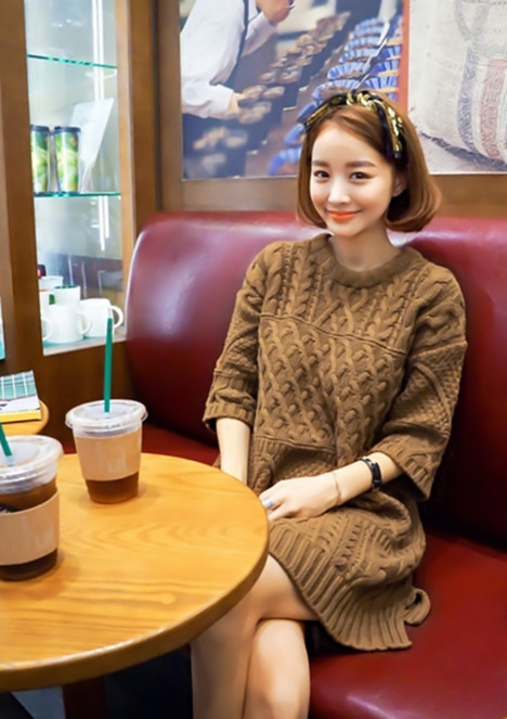 Style 9:中袖粗棒针织连衣裙