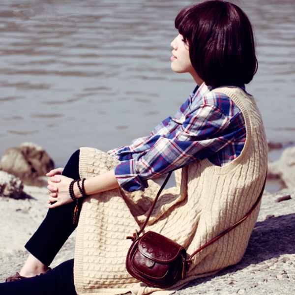 搭配技巧LOOK2:长款针织衫+格子衬衫