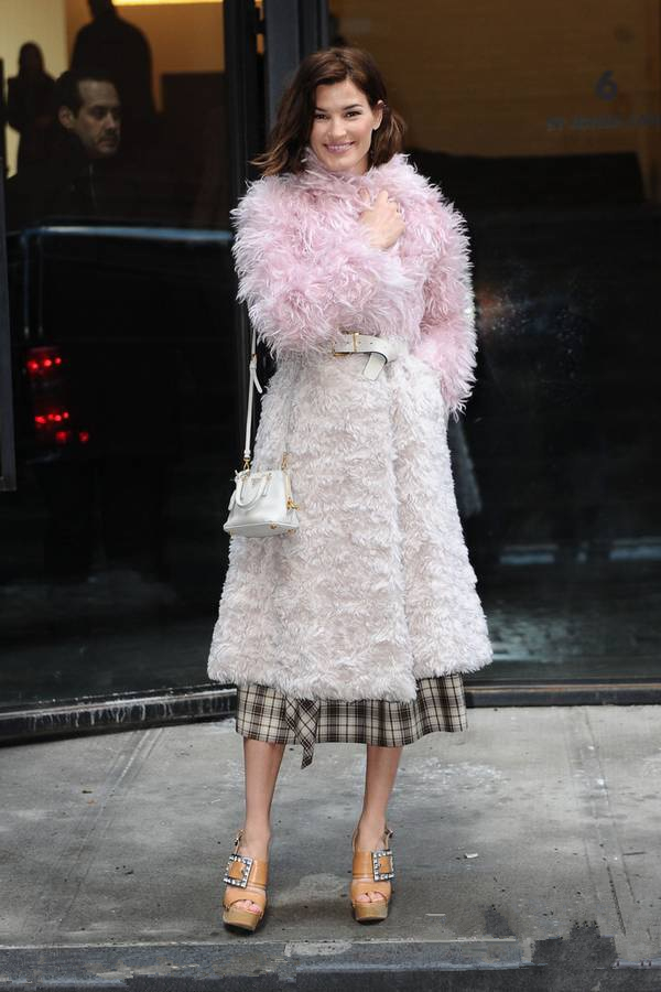 推荐理由:粉色上衣搭配的裤装也可以是元素丰富的裙子,比如两种色调或以上组合而成的条纹、格子或印花类型的裤子,不过要保证粉色上衣与组合色的基调融合,这样才耐看和时尚。