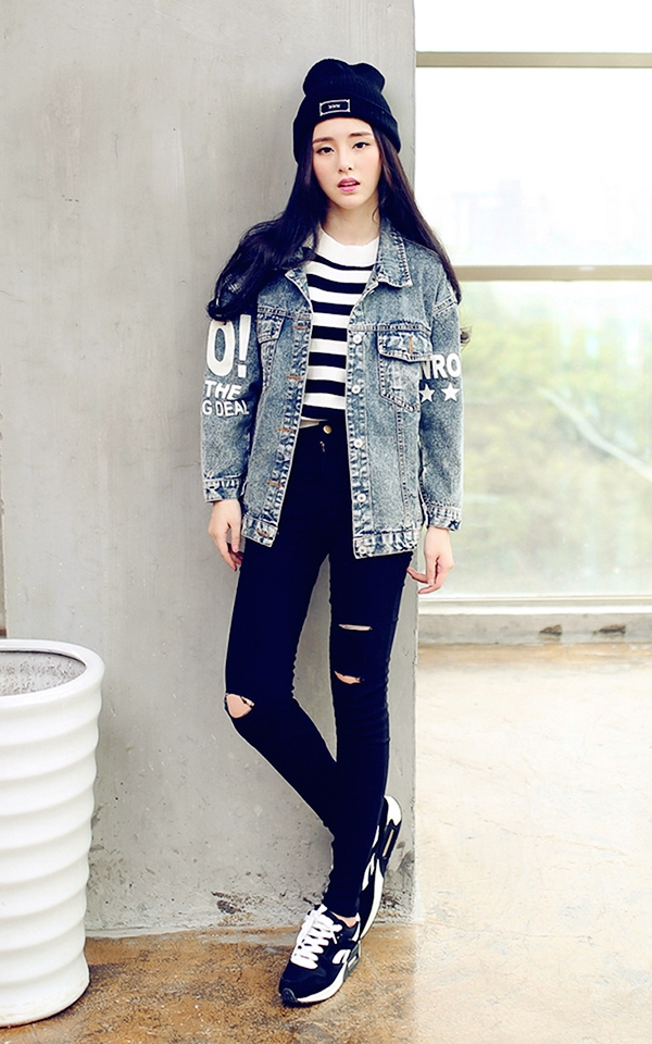LOOK 4: 牛仔衣搭配黑色破洞休闲裤
