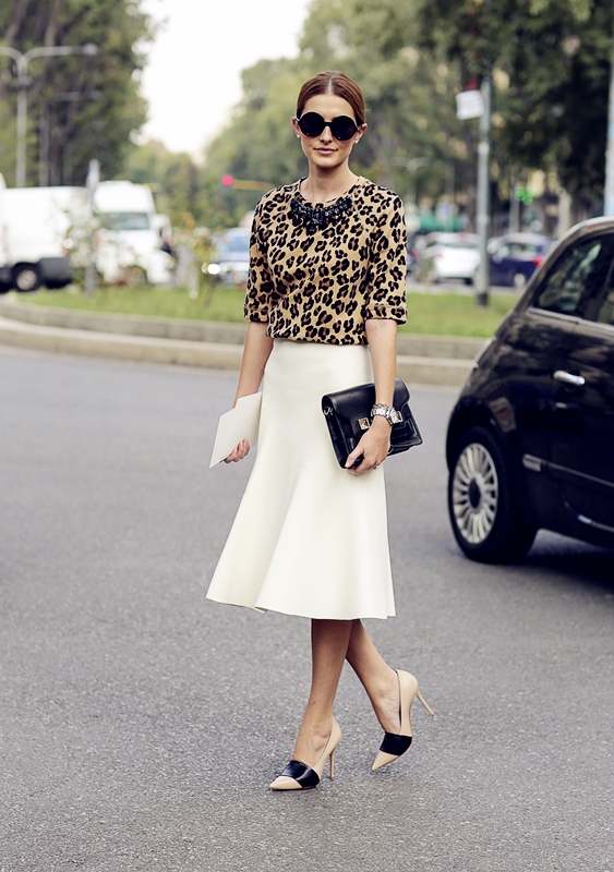 时尚看点:现代服饰出现了极具风格化的两面性,一面是崇尚时尚简约,一面注重潮流新颖,两者并没有实质的冲突,更多的人,是把这两种方式结合在一起,来塑造自己的个性名片。2015年的秋季街拍也更多看到这样的人群,像这款裙装,利用单色调和舒适面料的组合,让裙子显得干净利落,搭配上豹纹上衣,有立刻潮味十足。