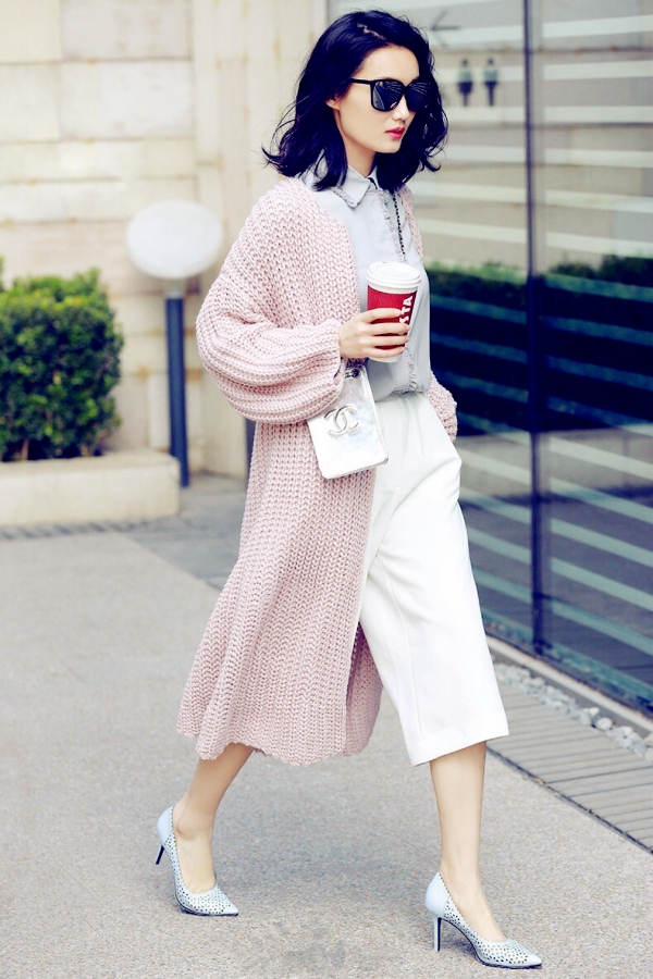 推荐理由:长款针织衫外套拥有独特的编织纹理,回归本真,简洁大气,很容易与其它上衣区别开来。而且长款针织外套和阔腿的搭配,无论是对于胖菇凉,还是身材矮小的MM都是不错的组合,既藏肉又显瘦。