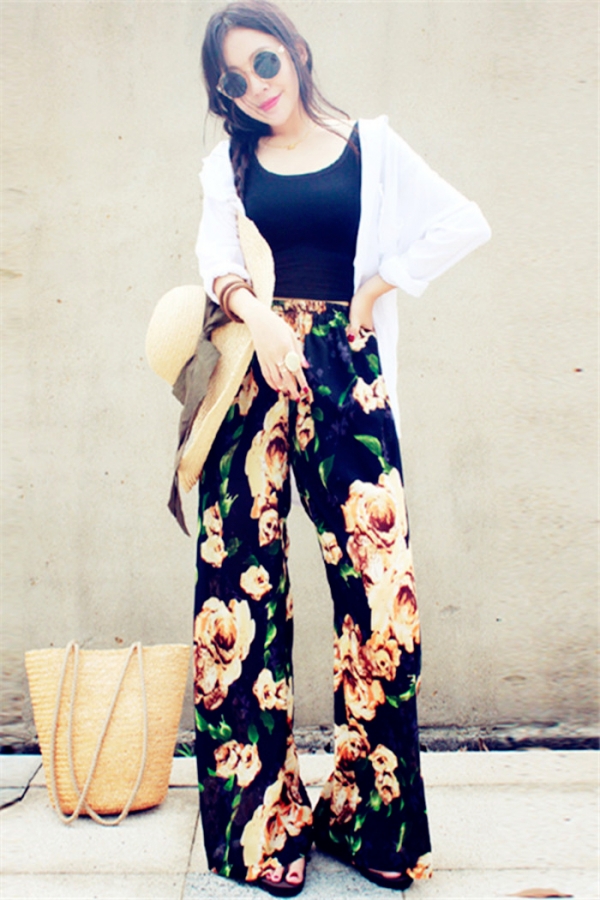推荐理由:阔腿裤大多是高腰款式,与短款的外套搭配能够让腿部更显长,看图片中模特的腿都已经长到没有边际了。