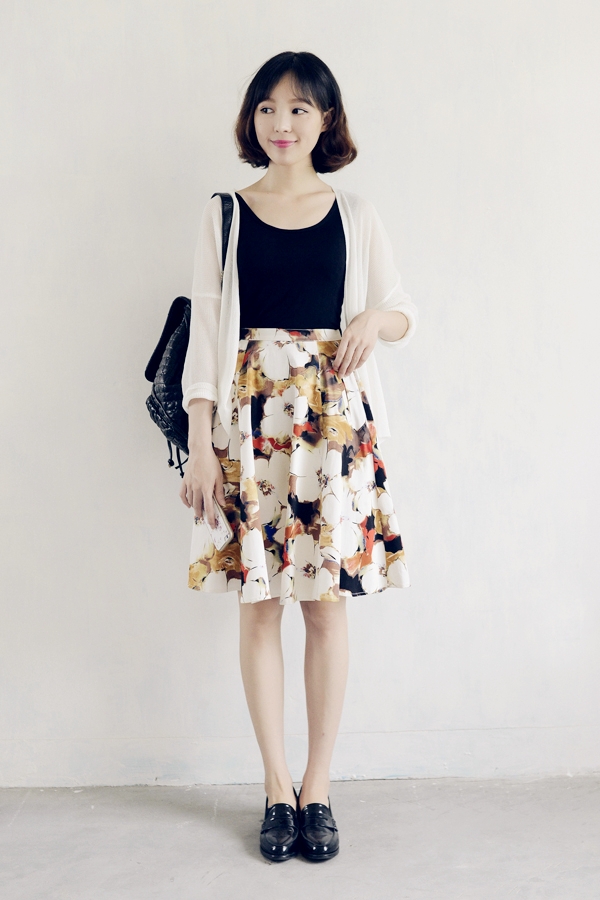 推荐理由:开衫毛衣外套与小皮鞋的搭配让MM们变得十分小清新,娇小的款型在与腿部的对比之下,让整体更显清纯可爱,开衫朴实的面料再配上甜美的bobo头,显得文艺范十足。