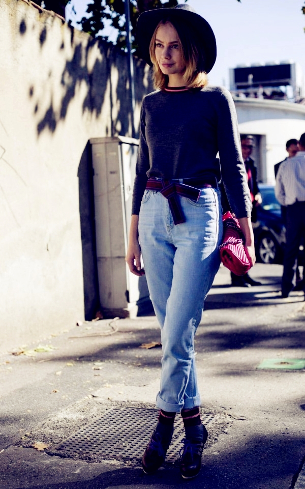 推荐理由:提到牛仔裤搭配什么上衣好看,有些MM比较不愿联想到针织衫,其实针织衫可以很多的可能性。像图一的女明星那样,选择鲜艳的色彩来提高吸睛度不失为一种吸睛方式,图二的牛仔裤颜色虽然颇为平淡,但通过包包,帽子配饰的点缀照样能够时髦出众。小编在这里也略微提醒,高腰的牛仔裤款式配上腰带做点缀可是潮女们百试不爽的小技巧哦!