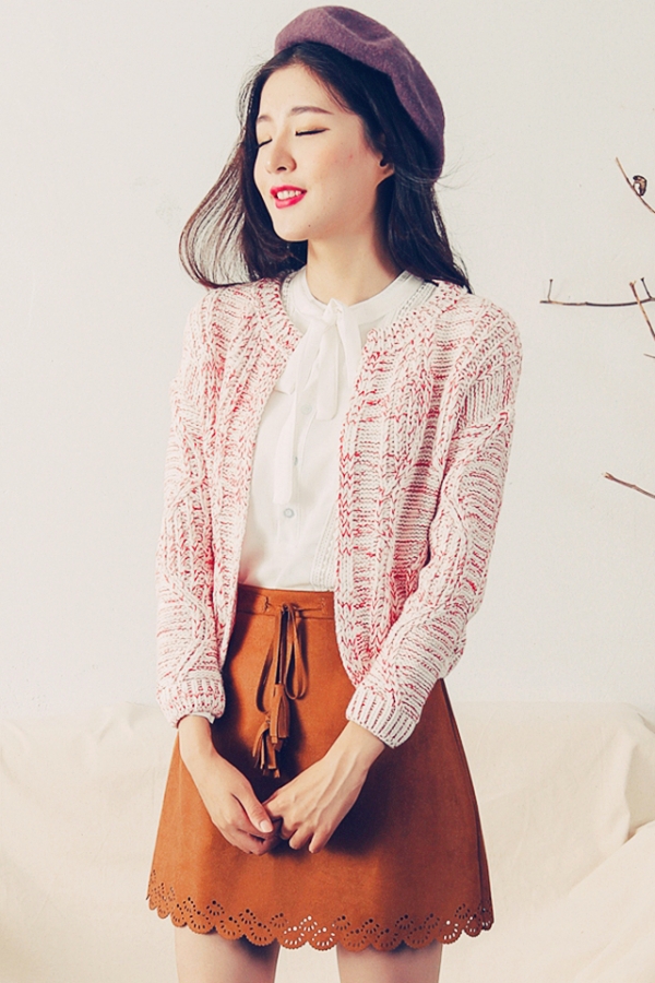 时尚看点:开衫毛衣外套的开口设计,很适合和裙子组成层次搭配,这也为问题身材MM提供了更多的穿着可能。像A字裙款就比较适合跨大且大腿较粗的女生,对腿部起到很好的修饰作用,如果腿短的MM也可选择高腰款式,利用短款上衣搭配来协调身体比例和增加时尚度,两全其美。