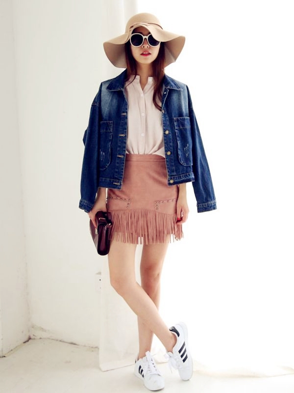 牛仔外套搭配什么裙子好看?随着潮搭趋势的高歌猛进,牛仔外套配裙子成为了时尚MM们在秋冬青睐的组合,大冷天反而更加激发出这种搭配势头,或许是MM们不用再担心美腿会被烤黑的缘故。不管是怎样的想法,如何把握好当前这个黄金期秀秀身材才重要,不如就跟着小编取取经,一起去看看那些吸睛度超高的牛仔外套搭配裙子的图片吧!