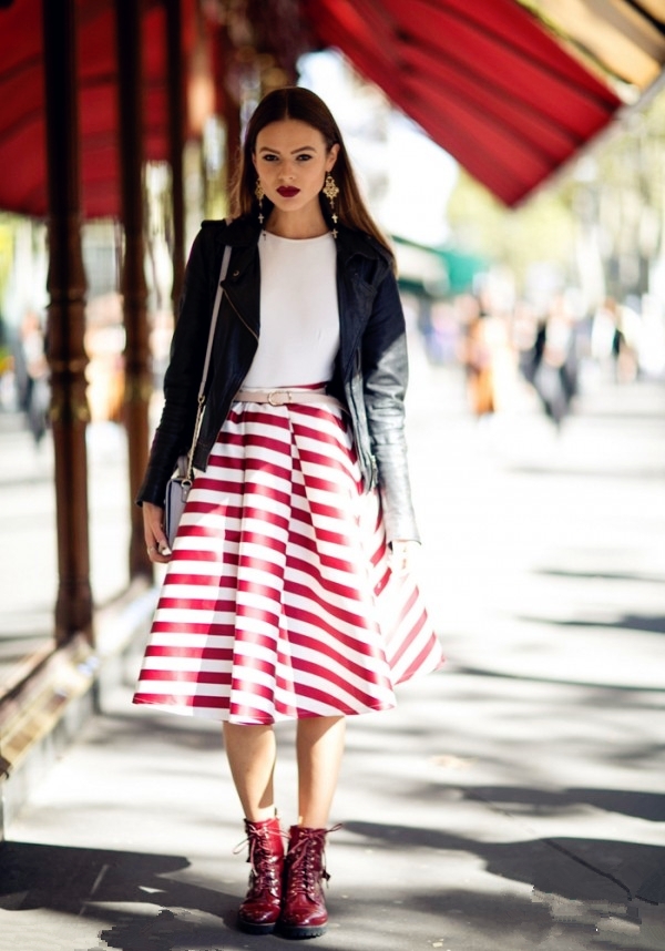推荐理由:看到机车上衣与短裙搭配,不少形成想法与现实的违和感。觉得帅酷的机车皮衣在遇到性感十足的短裙能有多少交集,但两者的碰撞却总能带来不一样的时尚与霸气,这在欧美达人眼中是极受欢迎搭配。