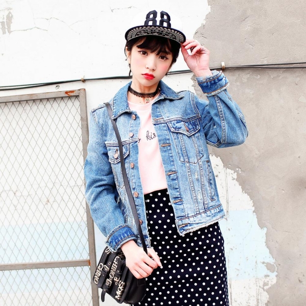 LOOK6 短款牛仔外套+包臀裙