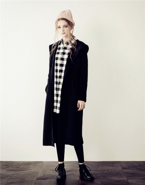 LOOK6 长款开衫+格子衬衫+黑色铅笔裤