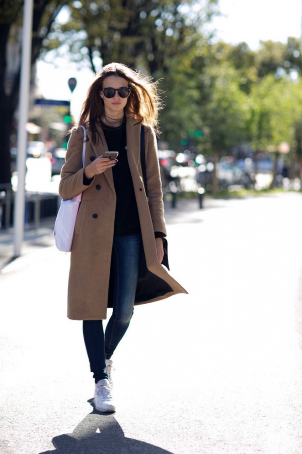 时尚看点:对于女士来说,牛仔裤是万万不可缺少的百搭单品,搭配呢子大衣也极其适合。穿上一条牛仔铅笔裤不仅保暖,还能在大衣的映衬下秀出苗条身姿,绝对是百试不爽的经典搭配哦!