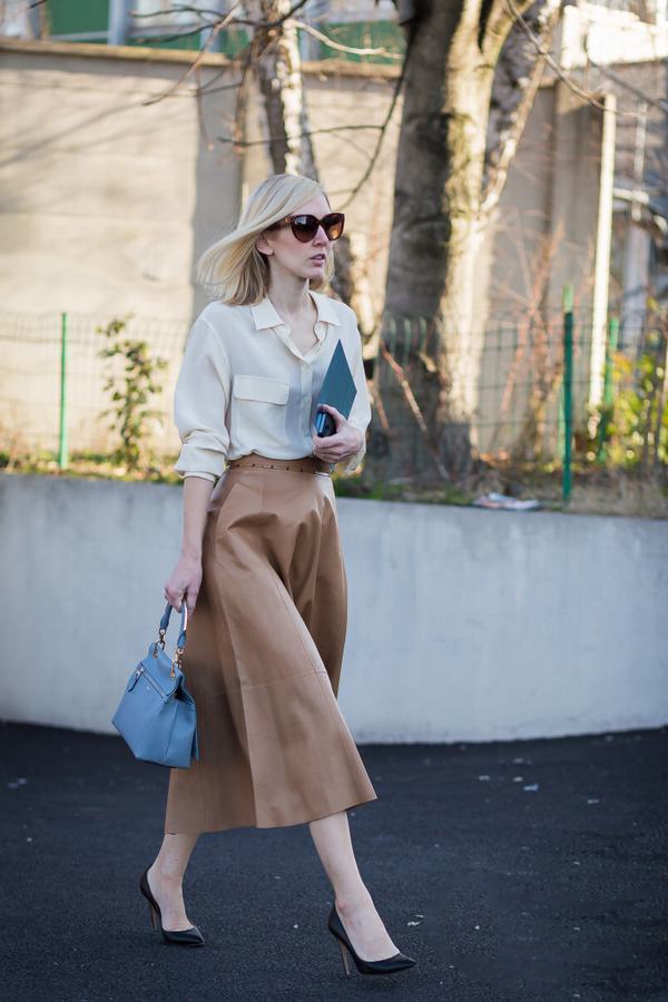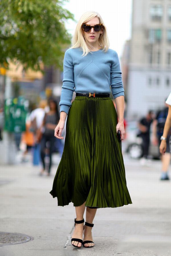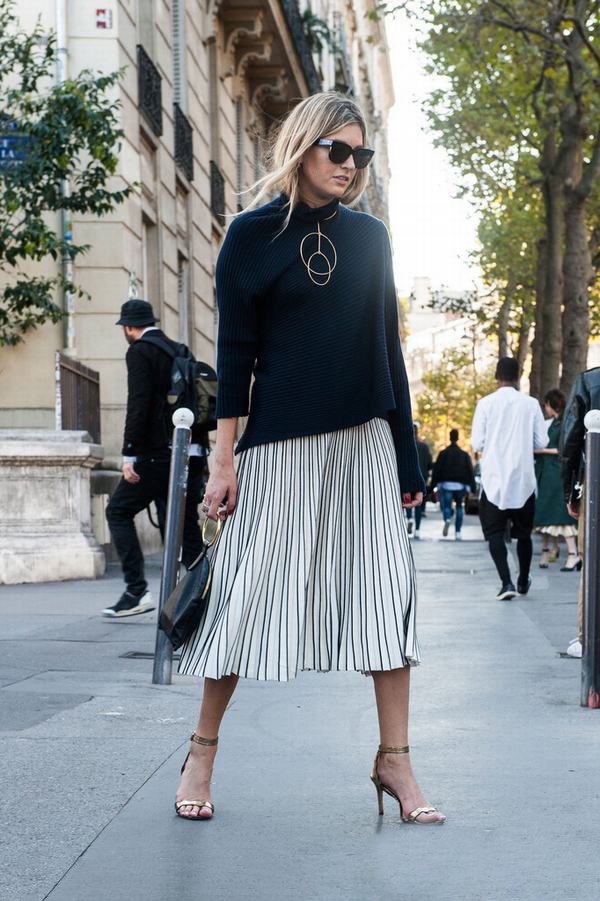过膝百褶裙是每季都很百搭的半裙款式,且不说今年的秀场上百褶裙频繁出现,在场外也是受到了不少时尚人士的喜爱。高腰将上衣塞进裙子或是搭配长款露出一小节,都让你轻松拥有优雅气质,有设计感的单品总是能引起他人的特别注意。这是身材的缺陷就不算什么啦。