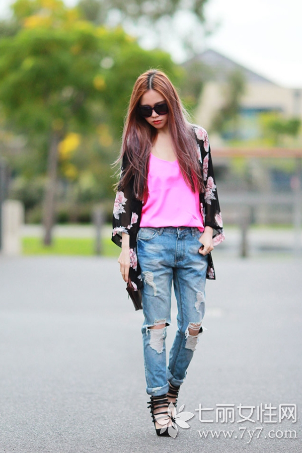 其实破洞裤说穿了就是条牛仔裤拥有了独特的设计,特殊的设计让人们的视觉不再停留在腿部线条上,从而达到显瘦的视觉效果。