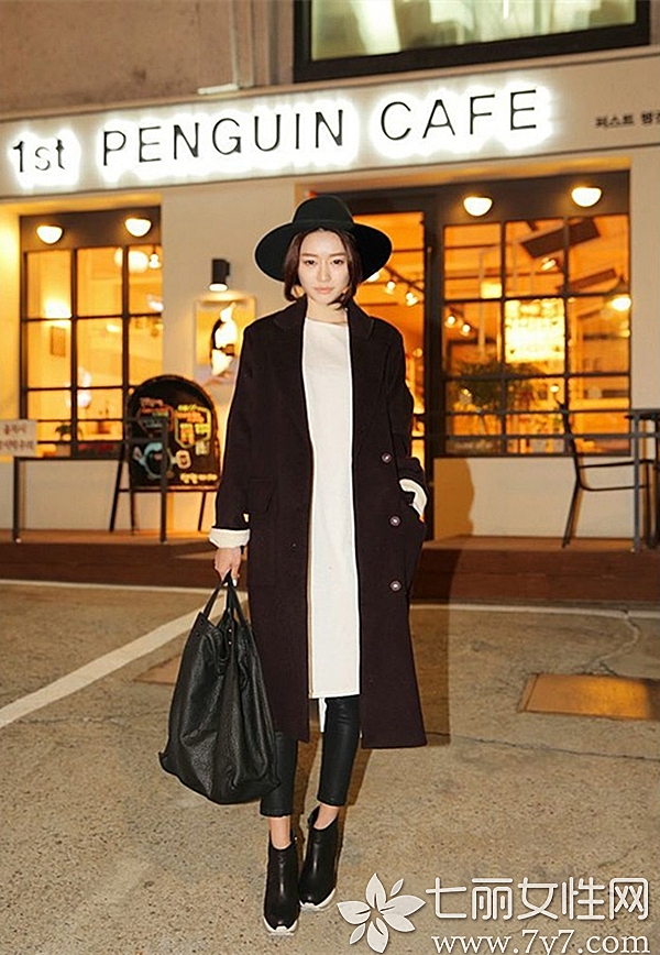 小编点评:毛呢外套搭配低帮皮靴是突显成熟气质的组合,看上去颇有名媛气质。皮靴在冬季不仅是御寒神器,也能让你直接变高挑不少,搭配毛呢外套可是绝佳哦!