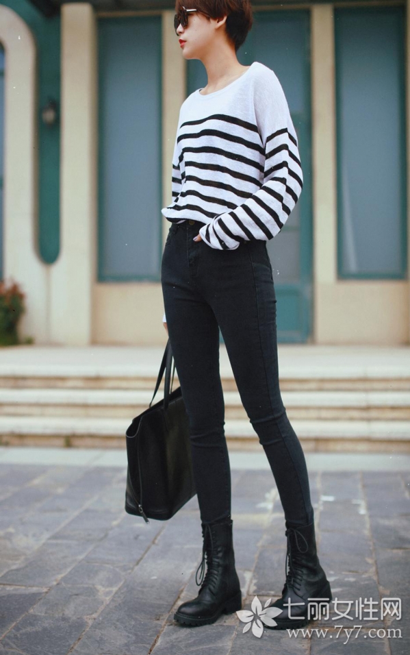 时尚看点:低帮皮靴与铅笔裤搭配组合,看起来帅酷时尚,其低帮的贴合,还有着修饰腿部的作用。选择与皮靴的同色系组合,还可以拉长腿部哦!