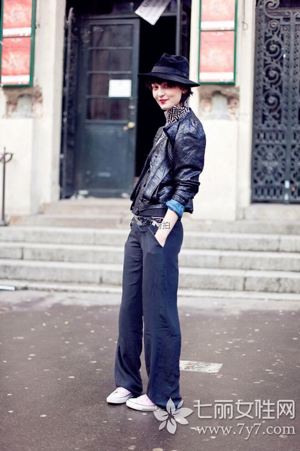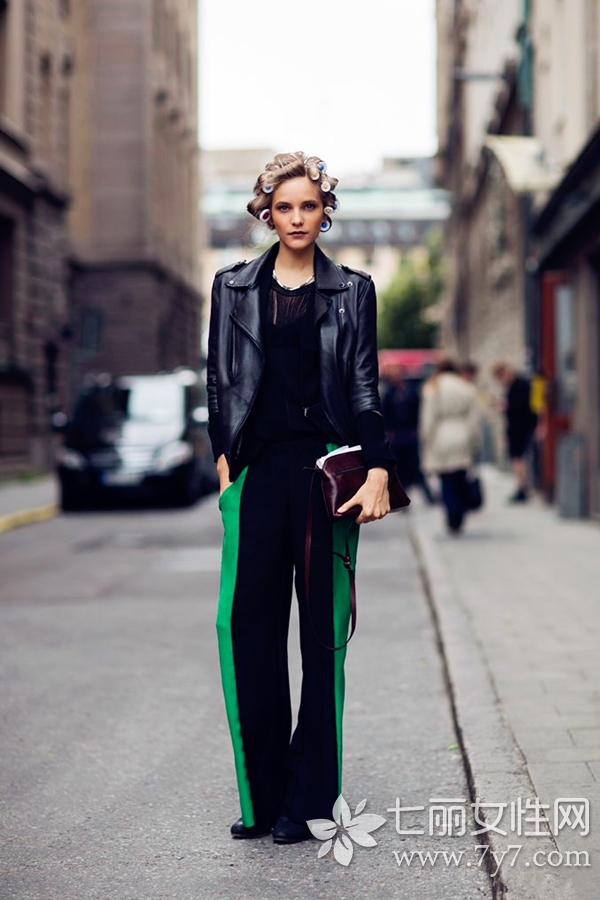 时尚看点:阔腿裤是当红炸子单品,剪裁风格简约大气,连许多女明星都对它爱不释手。用它来搭配机车皮衣,可以柔化皮衣过于硬朗的线条,多几分女性柔美气质,再者也将皮衣的街头帅酷风拉升到摩登的新高度。