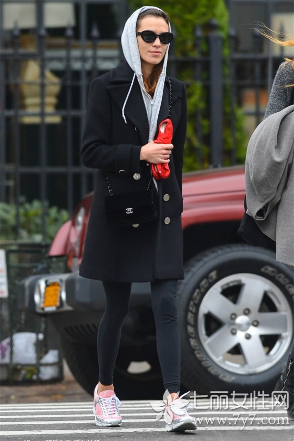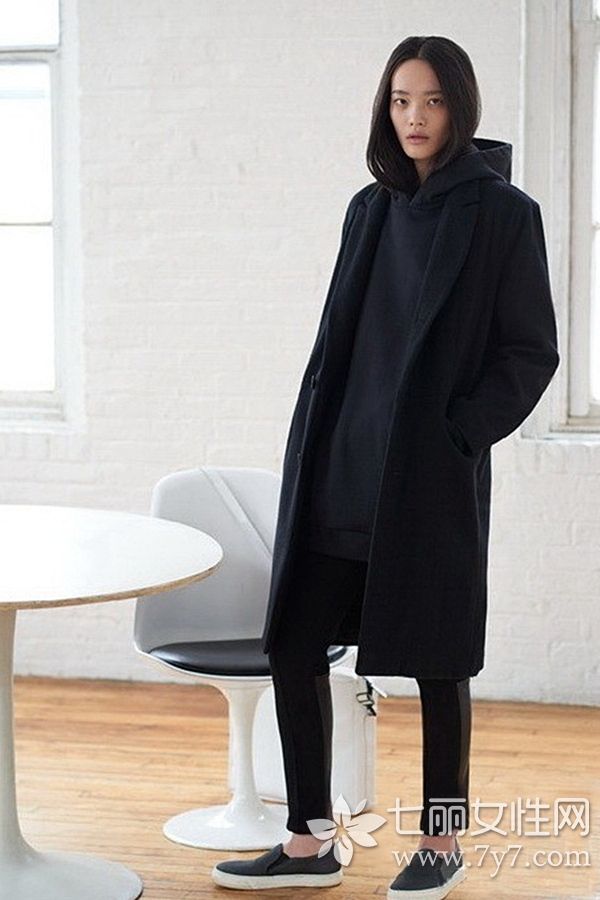 时尚看点:用卫衣搭配呢衣外套能穿出别样的街头风格,下装再配上铅笔裤,更显独特好看。