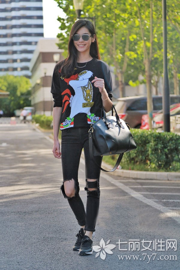 时尚看点:卫衣与牛仔裤搭配带有些许街头风格,是彰显青春时尚的经典搭配。在款式的选择上,像破洞牛仔,铅笔,九分类型的裤子,不仅时尚好看,而且对修饰不同腿型也十分有好处哦!