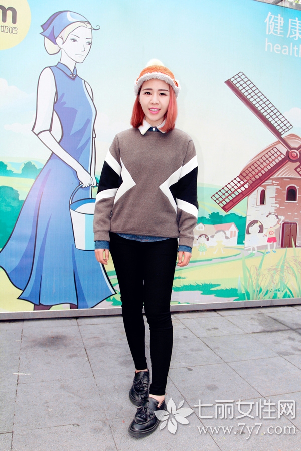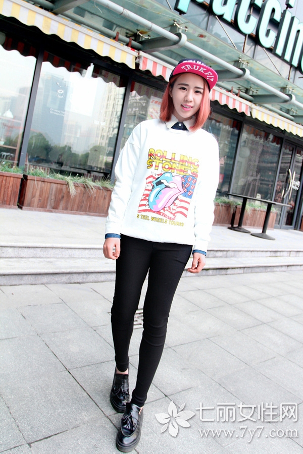小编点评:卫衣搭配上小皮鞋,不仅休闲好看,而且隐隐透着一丝文艺范,注意小皮鞋与铅笔裤的组合会更显腿部纤细哦!