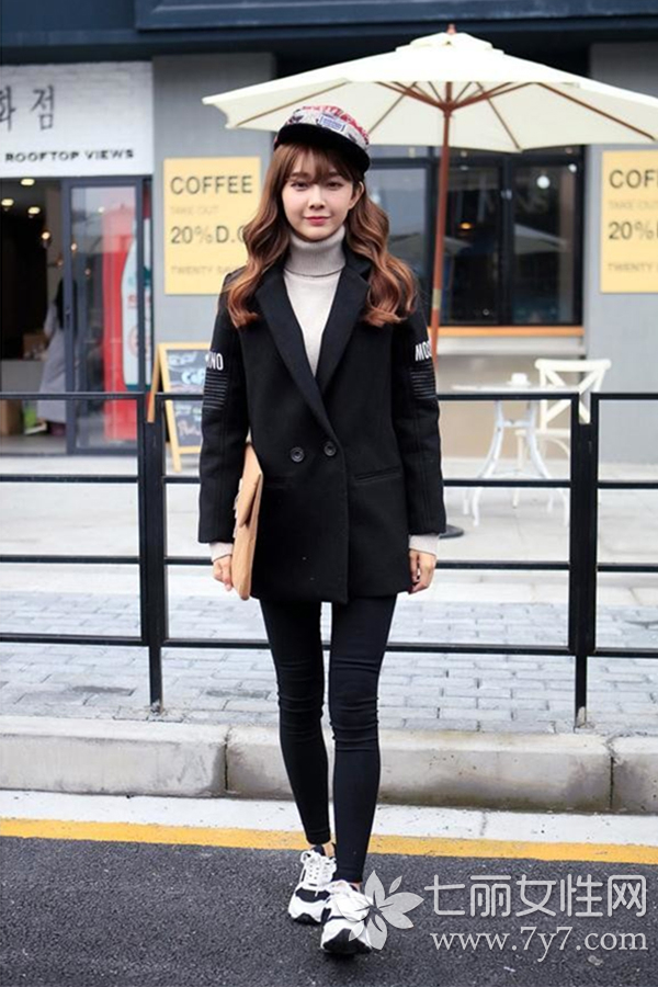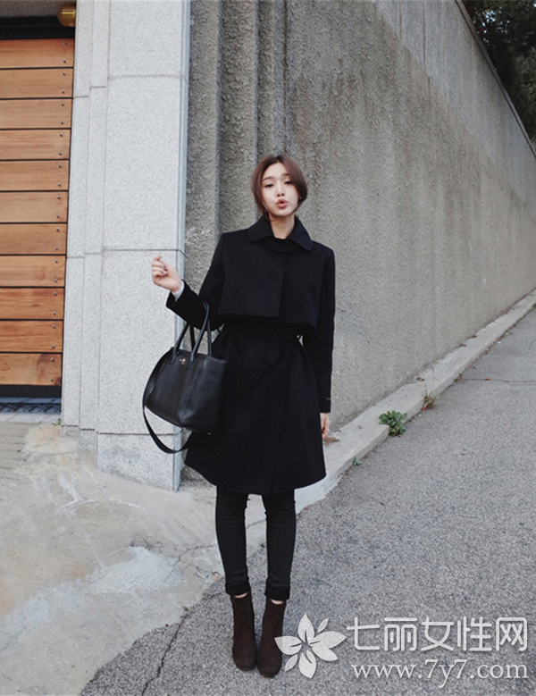 黑色毛呢大衣搭配图片