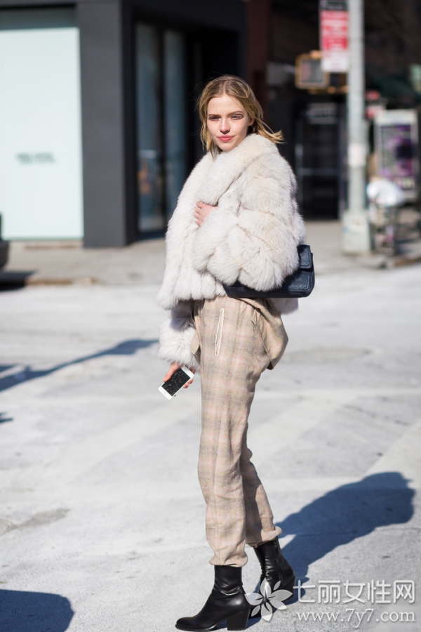 首先第一个出场的是皮草大衣,皮草穿得好就能避免浓浓的俗气和土豪气息。皮草大衣的搭配最重要的准则就是上宽下窄,如果你说你的是长款外套,那就记得里面穿的东西一定要贴身不然就会让整个人臃肿不堪。