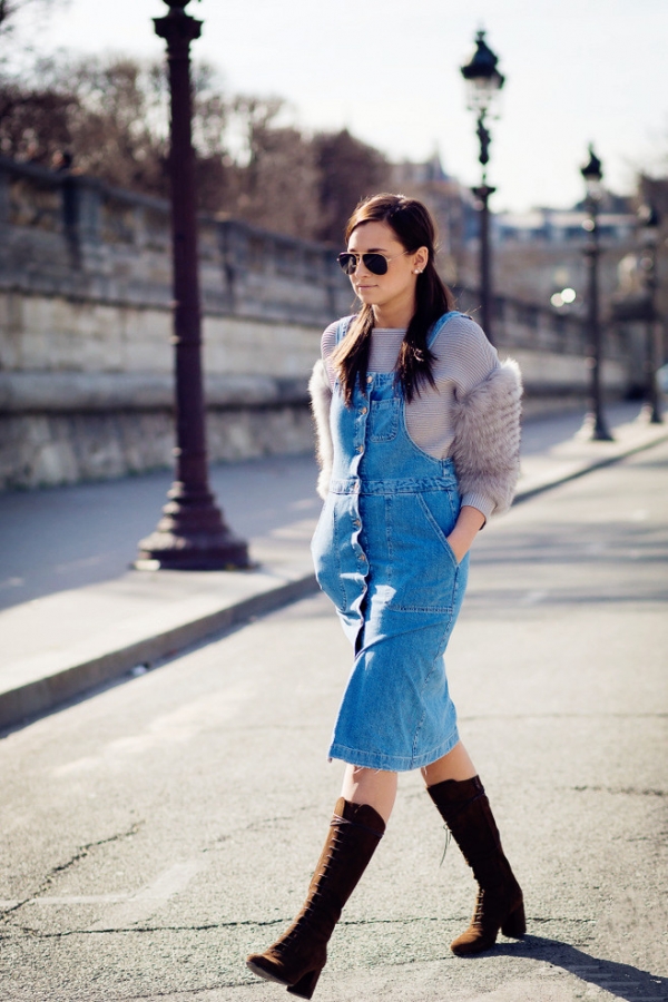 Style 5:皮草拼接毛衣+牛仔背带裙+系带靴