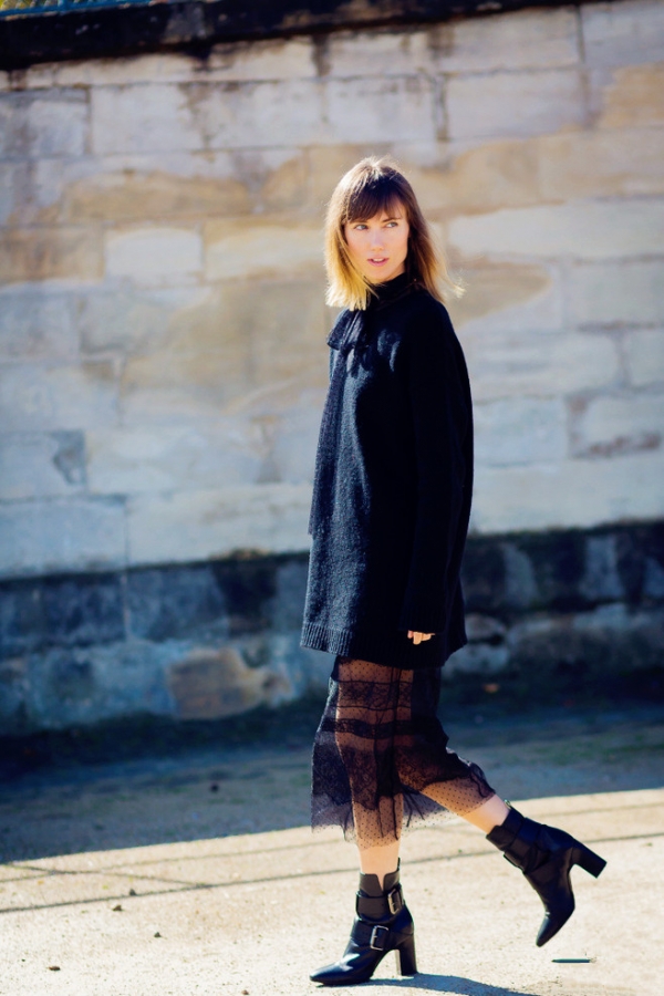 Style 12:中长款毛衣+蕾丝裙+短靴