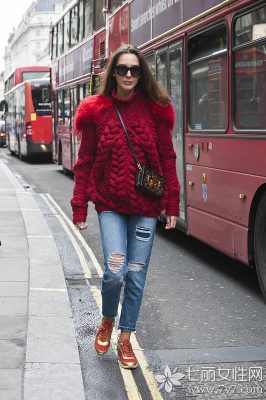 何穗最新街拍,灰色毛衣+墨绿色光泽感半裙,文艺慵懒,少女感十足。马海毛毛衣来自H&M,手提包和粉色毛拖鞋均来自Gucci,半裙来自Tibi 2016