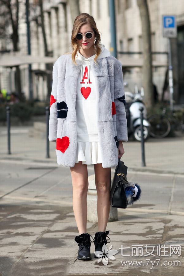 皮草大衣是冬季女生选择较多的单品,独特的奢华感和原始诱惑,让女生最好的展现气质。图中用卫衣搭配皮草大衣,形成的廓形对比,突显出身材的娇小,更添了几分活力。一条黑色丝袜修饰出迷人腿部,来略施性感,整体看上去极富清纯诱惑。