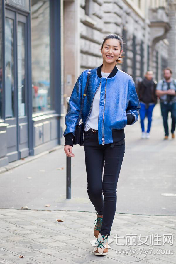 时尚看点:冬季要么像刘雯这样,穿得活力干练的出街,照样能赚足眼球。一件荧光蓝色棒球外套时髦又抢眼,彩色拥有与生俱来的时尚感染力,内搭还不忘用纯白tee来维持低调,配上运动鞋雪地靴,帅气就该这么玩!