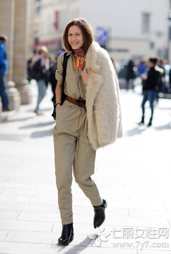 连体裤虽然在冬季街道上很少见女生穿,但它确实是非常理想的个性单品。整洁利落,不管是作为内搭还是单穿,这抹中性风格也给女生赋予别样的魅力,搭配皮草的style会更轻松活泼的玩转街头!