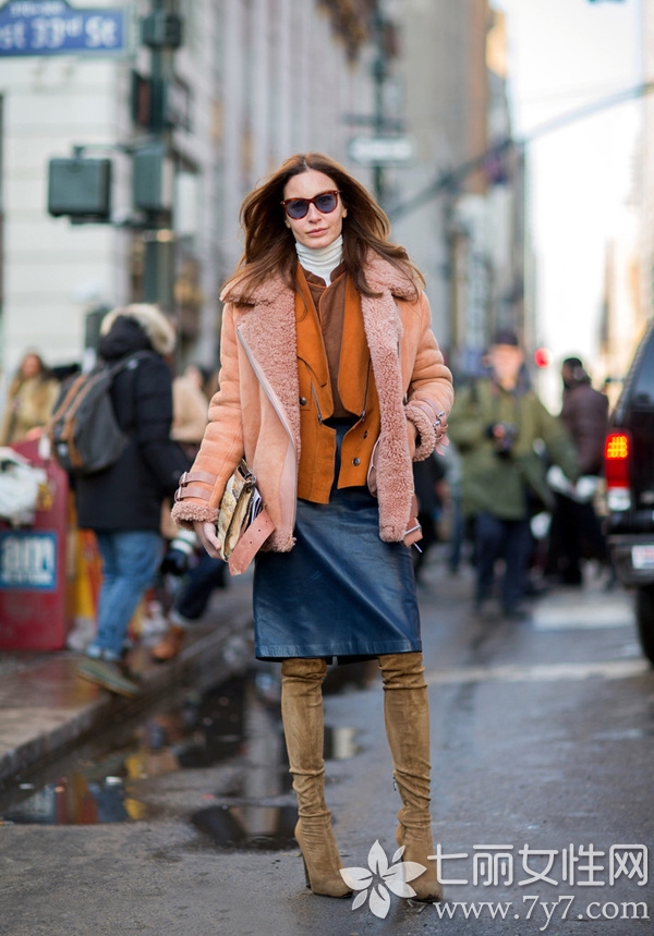穿遍了皮草外套+尖头高跟的正统版优雅雍容,偶尔也要尝试一些别样的格调,机车皮草外套搭配麂皮靴所营造的浓浓复古感,举手投足间尽显别样风情。