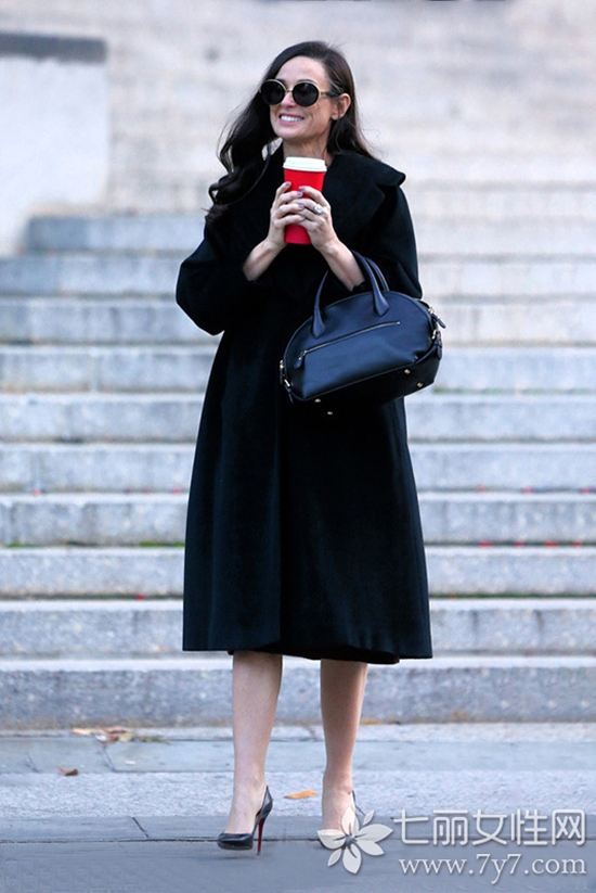 时尚看点:大衣配尖头高跟鞋,是冬季最简单而有时髦的穿法,裹上大衣更温暖,而且不需过多考虑内搭的选择,实在是要省心不少,不过出街带上一个精致的包包,会更完美哦!